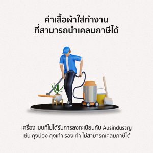 หากนายจ้างว่าพนักงานควรจะสวมเครื่องแบบเวลาทำงาน แต่ไม่ได้เป็นข้อบังคั คุณจะเคลมค่าเครื่องแบบนั้นได้ก็ต่อเมื่อเครื่องแบบนั้นได้รับการลงทะเบียนกับ AusIndustry
