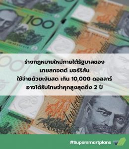 ร่างกฎหมายใหม่ภายใต้รัฐบาลของ นายสกอตต์ มอร์ริสัน ว่าด้วยเรื่องการใช้จ่ายด้วยเงินสด เกิน 10,000 ดอลลาร์ ไม่ว่าจะเป็นการชำระค่าสินค้า บริการ และค่าใช้จ่ายทางธุรกิจ อาจได้รับโทษจำคุกสูงสุดถึง 2 ปี