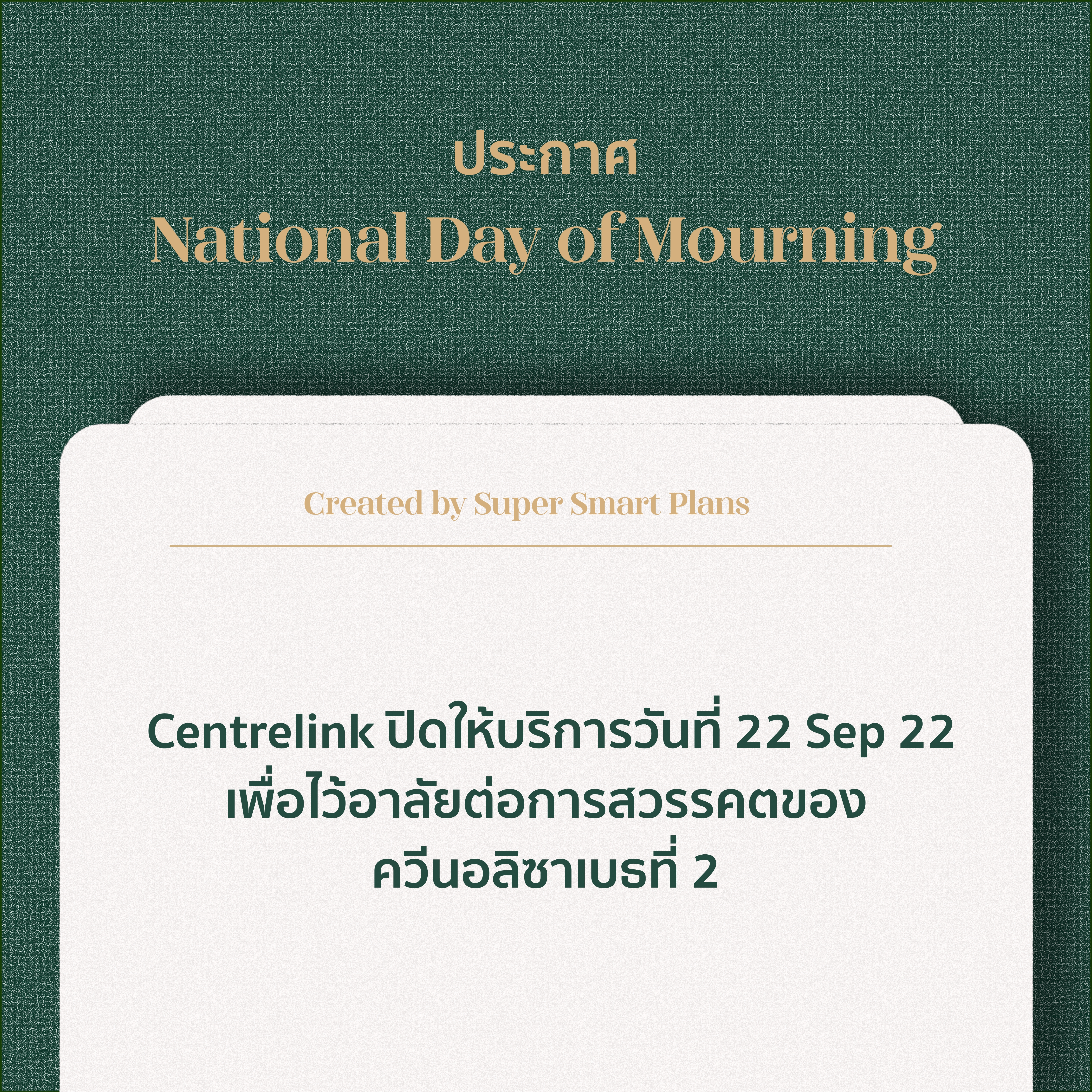 Centrelink ปิดให้บริการวันที่ 22 Sep 22 เพื่อไว้อาลัยต่อการสวรรคตของควีนอลิซาเบธที่ 2 (National Day of Mourning)