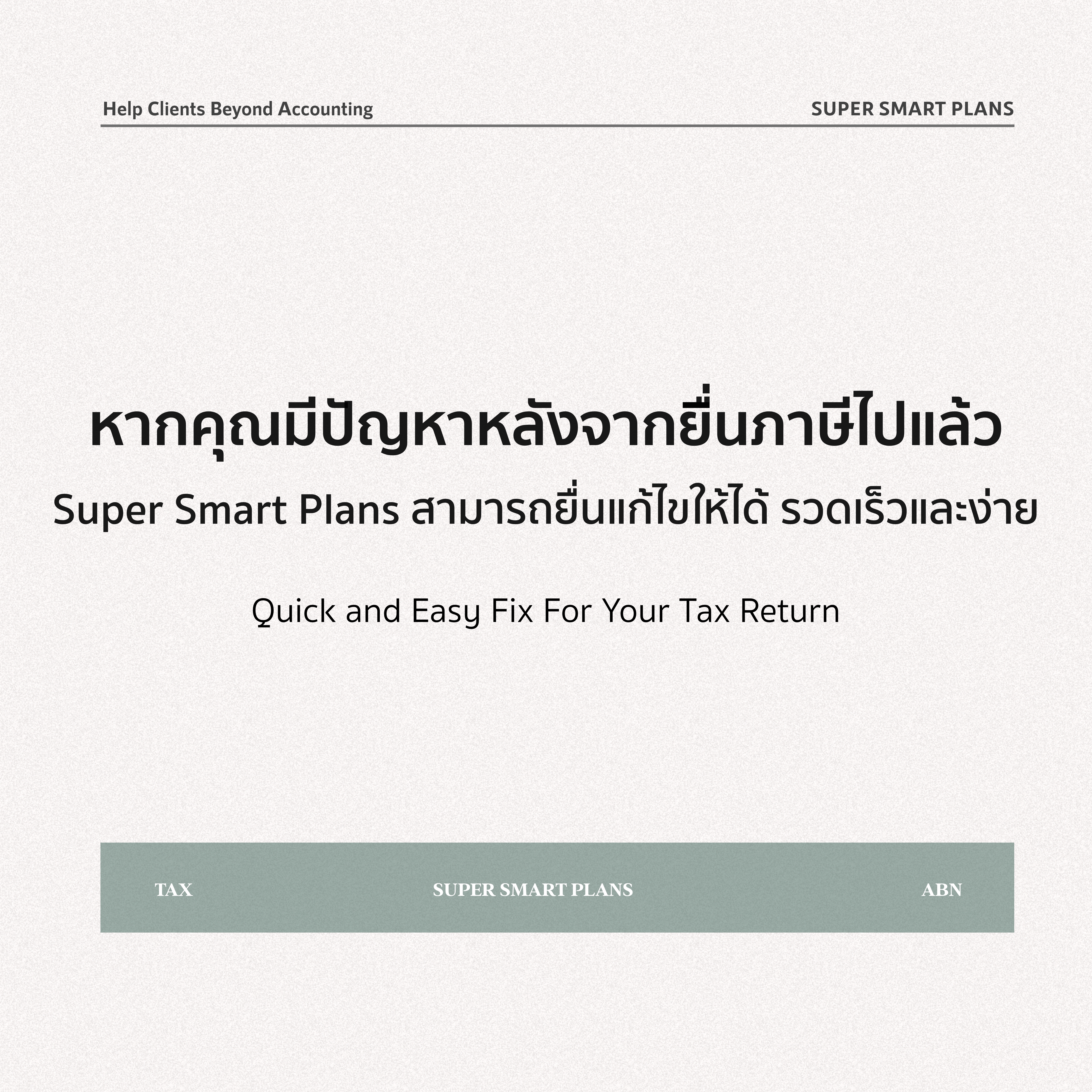 หากคุณมีปัญหาหลังจากยื่นภาษีไปแล้ว Super Smart Plans สามารถยื่นแก้ไขให้ได้ รวดเร็วและง่าย