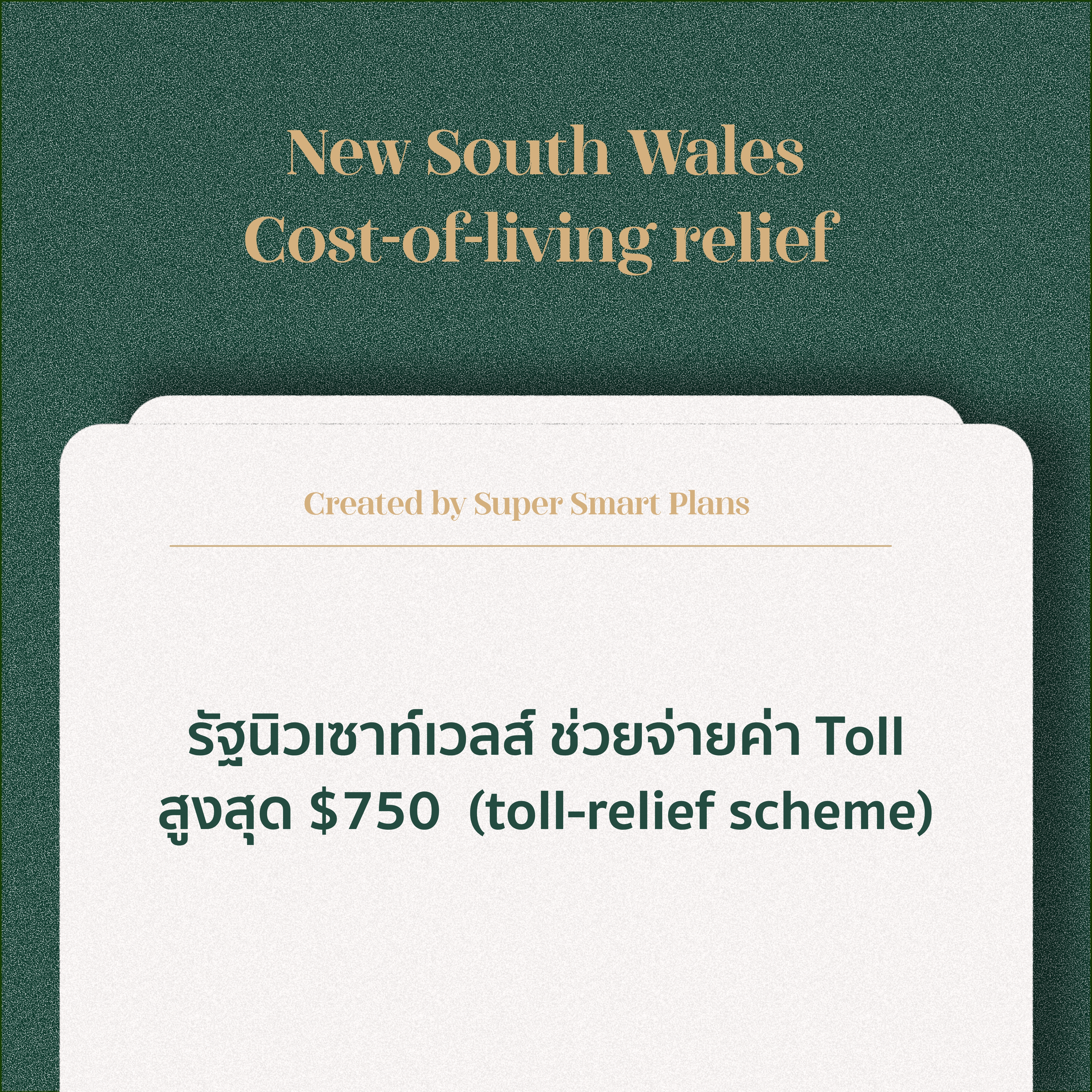 รัฐนิวเซาท์เวลส์ช่วยจ่ายค่า Toll สูงสุด $750 (toll-relief scheme) เนื่องจากค่าครองชีพที่สูงขึ้น