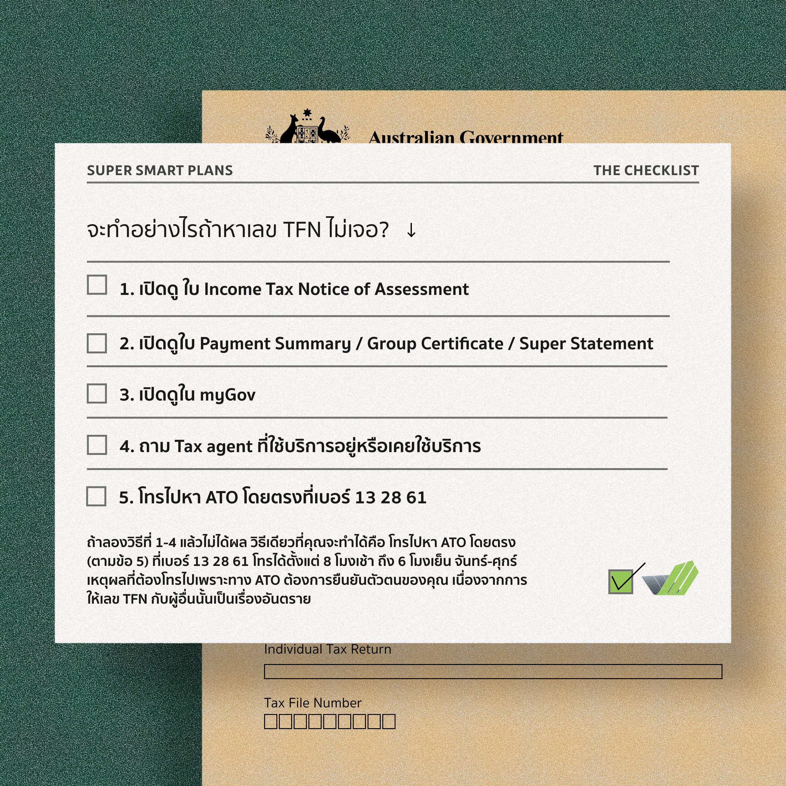 [ข่าวภาษีอัปเดต เพื่อคนไทยในออสเตรเลีย] จะทำอย่างไรถ้าหาเลข TFN (Tax File Number) ไม่เจอ