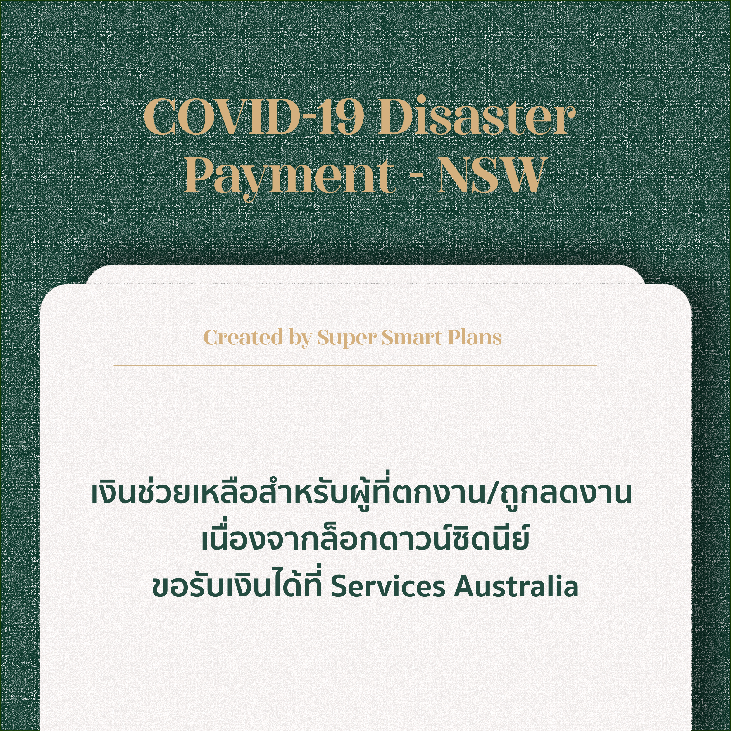 #taxagent #สำนักงานบัญชี #ภาษีออสเตรเลีย #ซุปเปอร์ #superannuation #เพื่อคนไทยในออสเตรเลีย #ยื่นภาษีในออสเตรเลีย #เคลมภาษี #Tax2021 #TaxPreparation #ยื่นภาษีABN #เงินช่วยเหลือซิดนีย์ล็อกดาวน์ #COVID19DisasterPayment #ตกงานถูกลดงาน